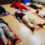 初心者ばかりでしたので、いきなりポーズをとるよりは、という先生のご配慮で軽く体を伸ばす程度のワークでした。